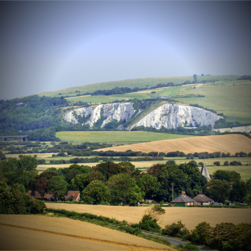 Ancient chalk ridge through quintessential English countryside.
