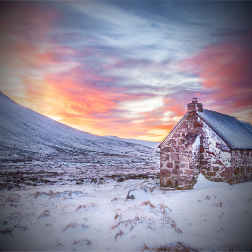 - Mountain bothies (basic shelters)