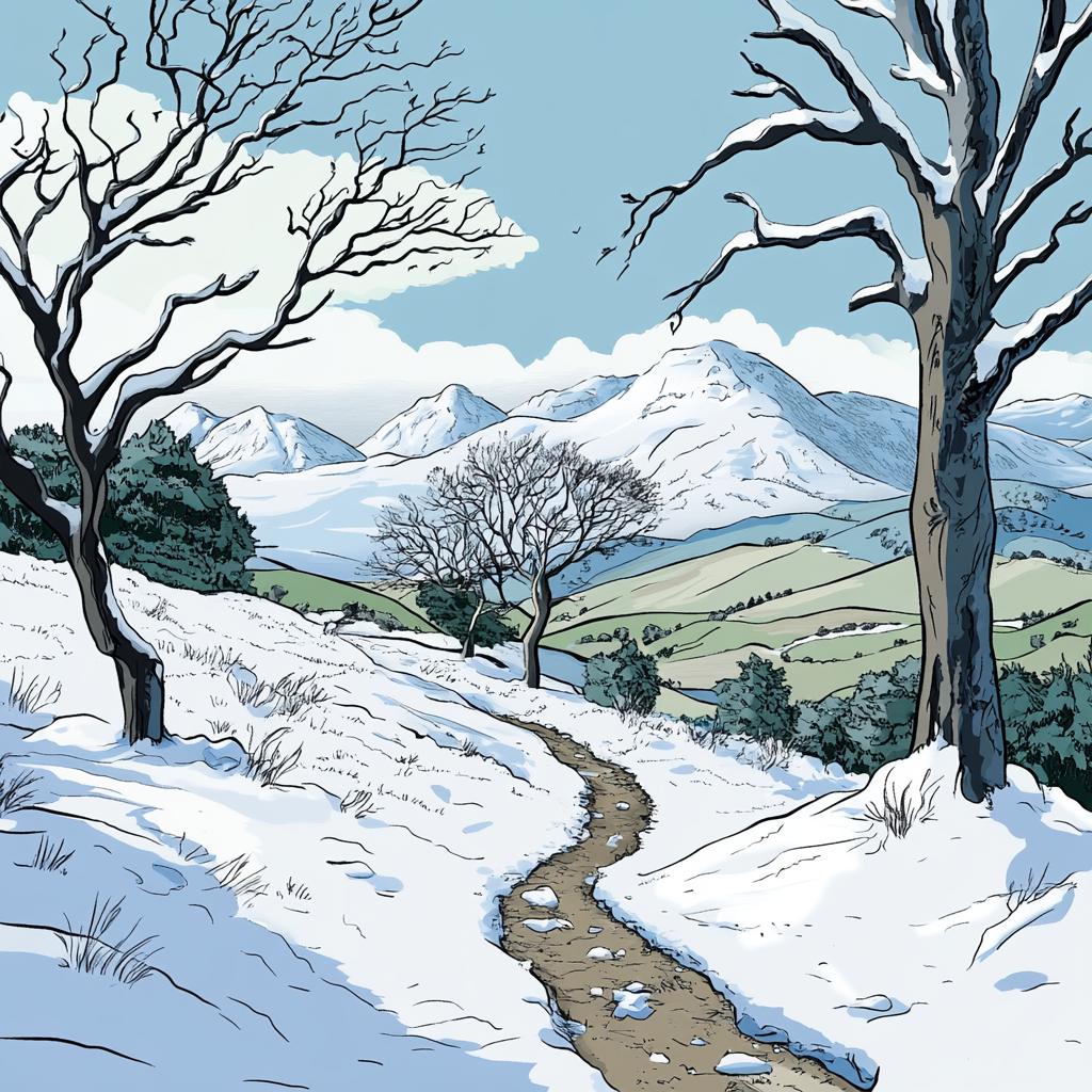 - Snow on higher ground