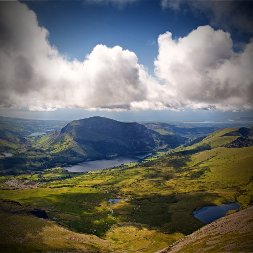 Wales's highest mountain range offers challenging peaks and gentler valley walks within a dramatic national park.
